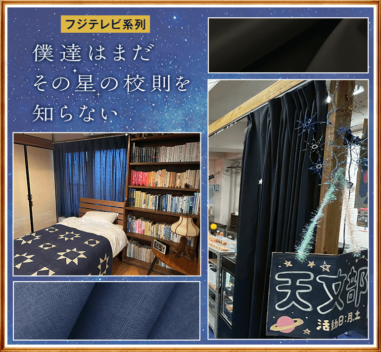 フジテレビ系列ドラマ「僕達はまだその星の校則を知らない」にて弊社オリジナルカーテン「Asa Fine」「K-wave-D-eco48plain」が使用されました。